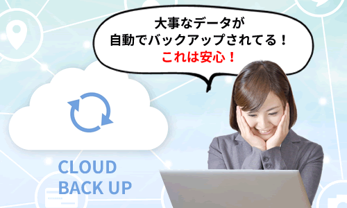 販売管理ソフトで作成したデータは更新時にクラウドに同期され、自動でバックアップされます。その為、事務所のパソコンやUSBメモリにデータを保存する必要がありません。