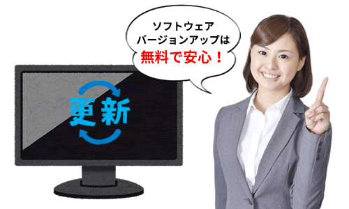 カシオのシンプル販売管理ソフトがバージョンアップする場合、「バージョンアップのお知らせ」がお客様ごとに送信されます。内容をご確認後、簡単にバージョンアップが出来るので、常に最新の販売管理ソフトをご利用いただけます。また、バージョンアップに追加料金はございませんので、安心して使い続けられます。
