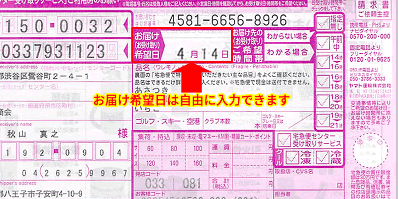 お届け希望日は、手書きではなく、自由に入力出来るので、キレイに印字することが出来ます。手書きによる誤字脱字を防げます。